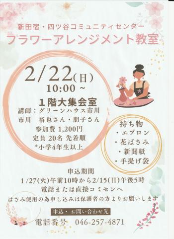 まちづくり・コミュニティ公開日:2026年01月24日フラワーアレンジメント教室開催日:2026年02月22日(日)