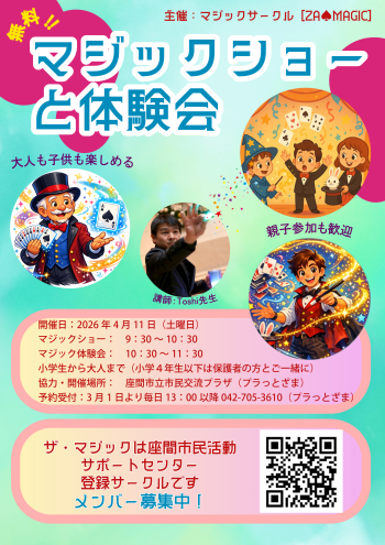 4月の活動日にイベントを開催することになりました。詳細が決定したら、このページでご...ZA♠MAGIC