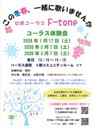 歌好きな方,一緒に歌ってみませんか。見学大歓迎。