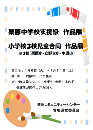 公開日:2025年12月06日🎨栗原中学校支援級生徒作品展&3校合同児童作品展🎨開催日:2026年01月06日(火)~01月31日(土)