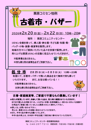 公開日:2026年01月20日🦉🤩⛄「古着市・バザー」開催しまーす⛄🤩🦉開催日:2026年02月20日(金)~02月22日(日)