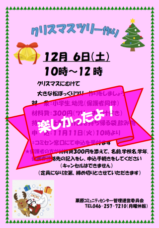 令和7年、12月6日(土)に🎄🔔クリスマスツリー作り🔔🎄を行いました。