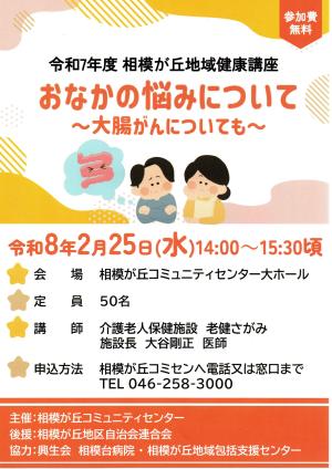 相模が丘地域健康講座「おなかの悩みについて~大腸がんについても~」