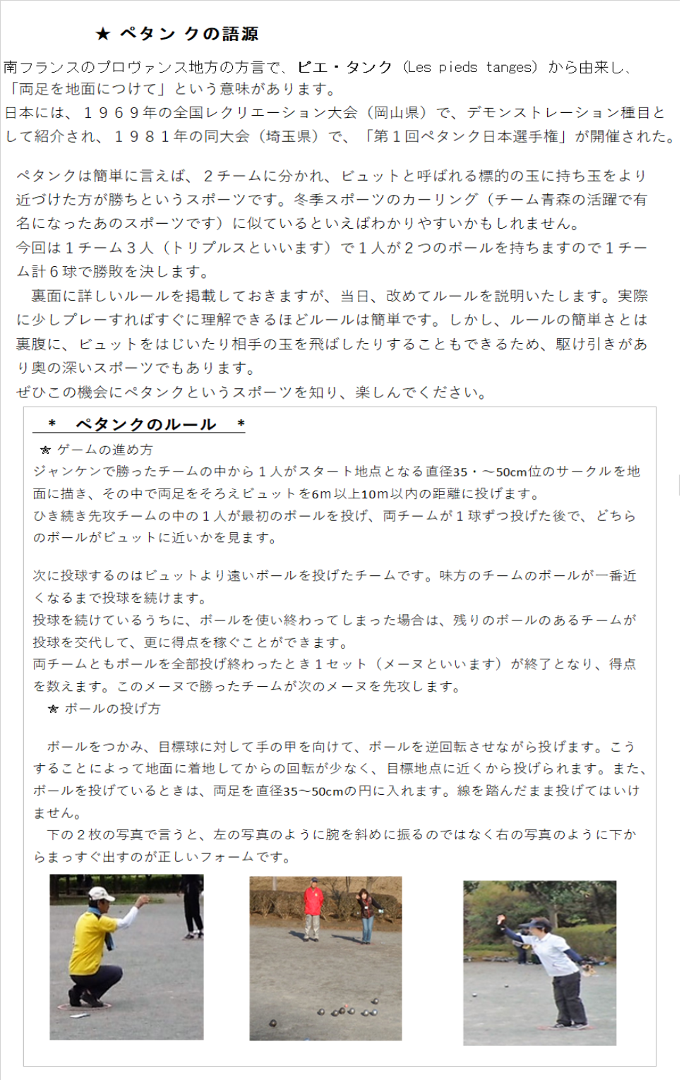 ペタンクは簡単に言えば、2チームに分かれ、ビュットと呼ばれる標的の玉に持ち玉をより近づけた方が勝ちというスポーツです。