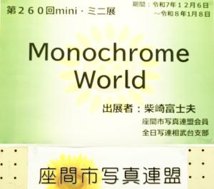 2025年12月度 座間市写真連盟 座間市図書館miniミニ展「個展 MonochromeWorld」