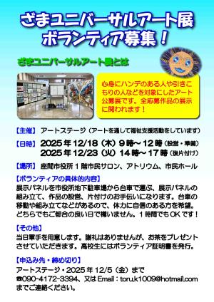 募集情報公開日:2025年09月30日ざまユニバーサルアート展のボランティアを募集します!