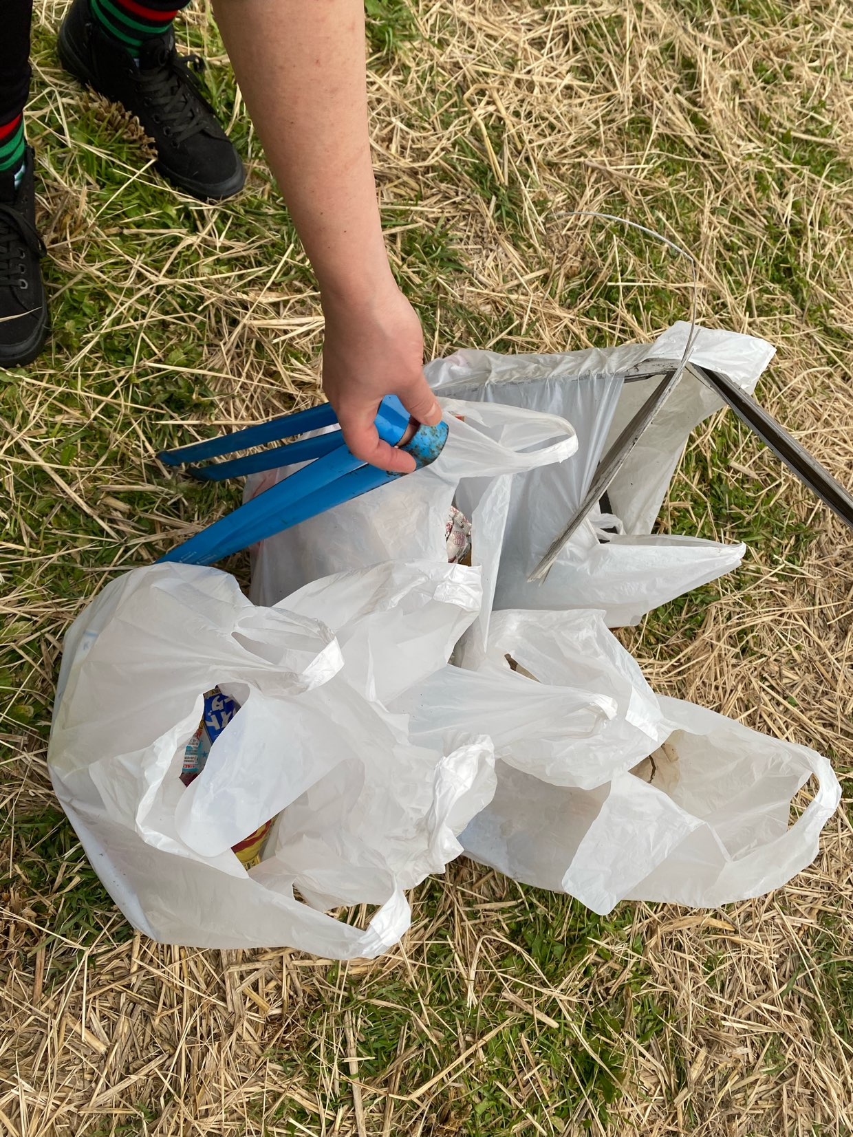 21日翌日は毎年恒例の花火のカケラを周辺田んぼから拾う活動日となり
