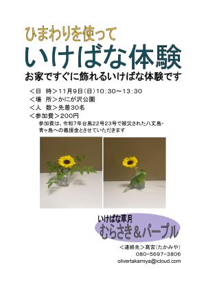 イベント情報公開日:2025年11月05日🌻ひまわりを使って「いけばな体験」🌻イベント終了開催日:2025年11月09日(日)