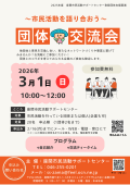 公開日:2026年01月19日市民活動支援団体交流会のお知らせ【参加者募集】開催日:2026年03月01日(日)