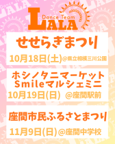 <br /> 今週末のお祭り<br /> 三ヶ所に参加させていただきます!<br /> <br /> LALAのパフォーマンスを<br /> 是非見...